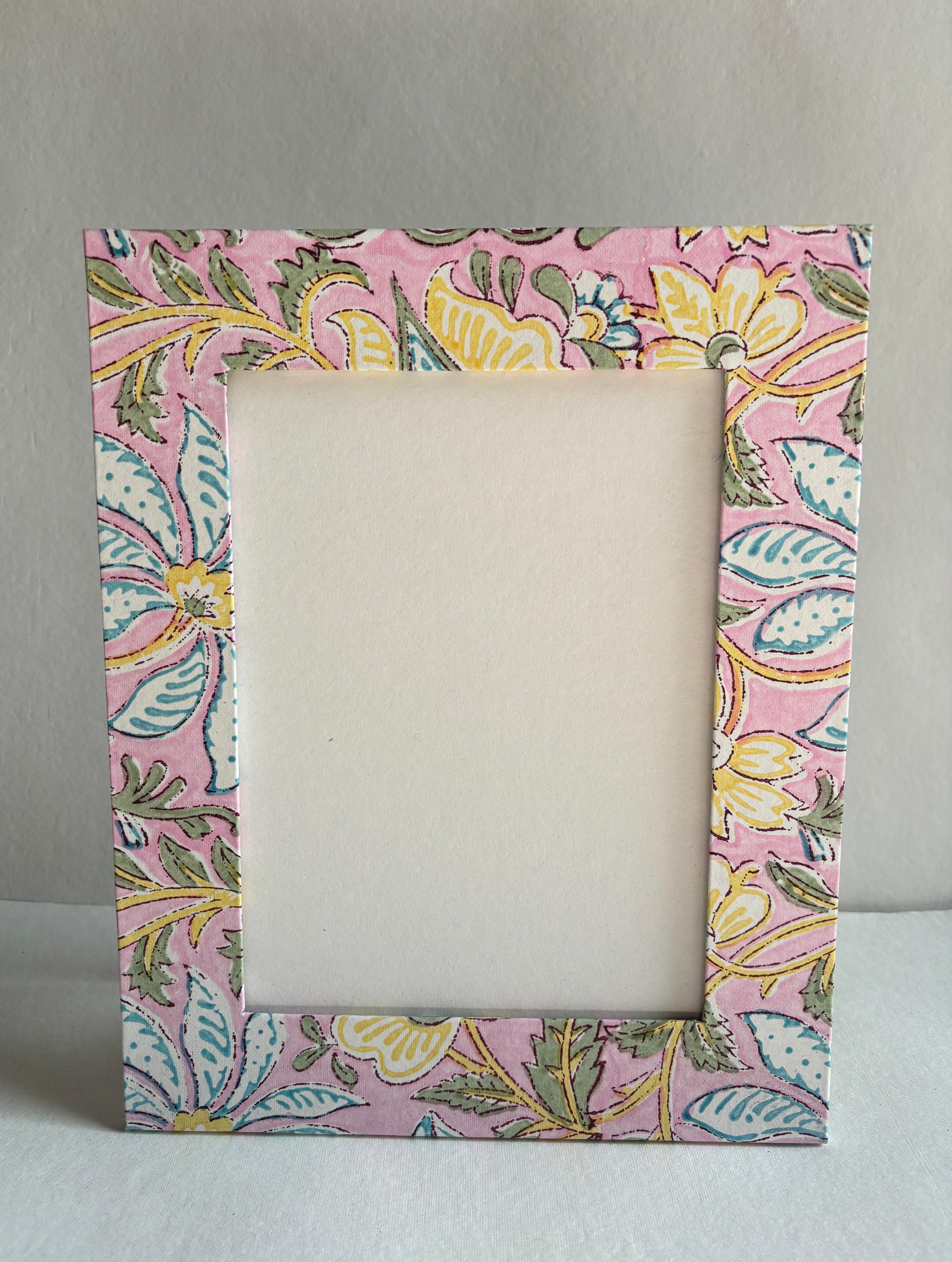 Handmade Photo Frame, Block Printed Frame, Recycled Paper Frame, Eco-Friendly Photo Frame, Sustainable Picture Frame, Artisan Crafted Frame, Unique Photo Display.